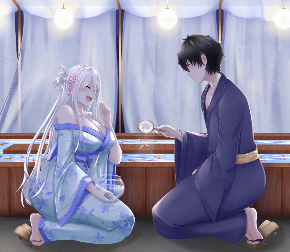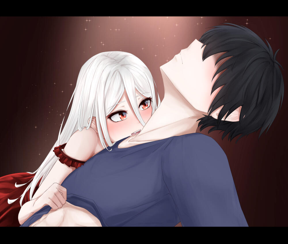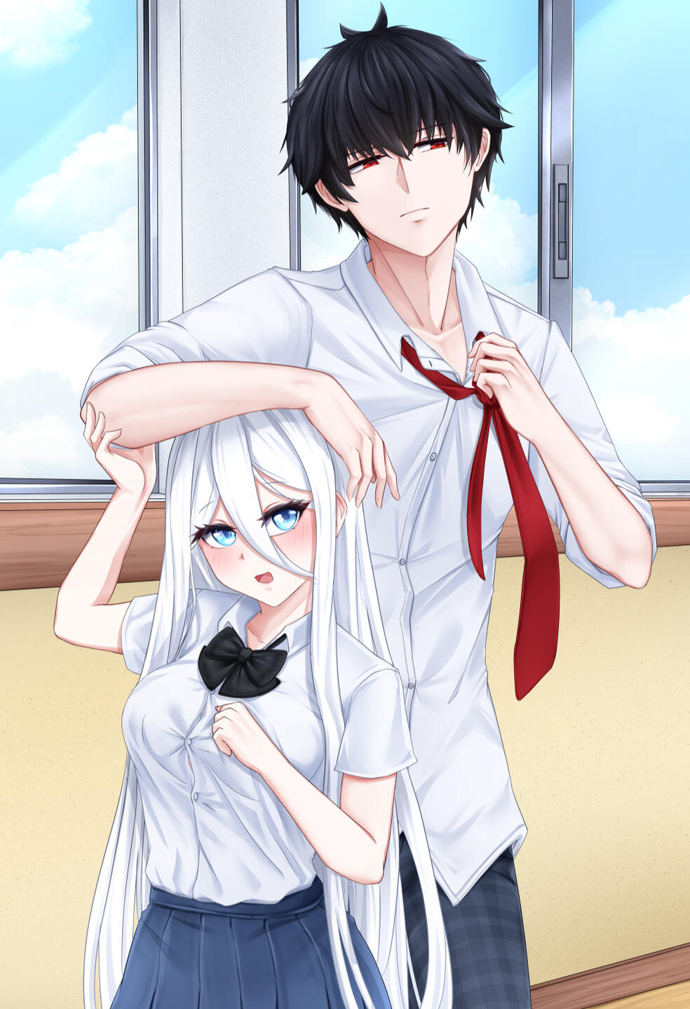 Mon OC, Aoi, est une simple humaine écolière aux cheveux blancs et aux yeux bleus.